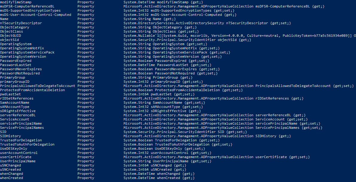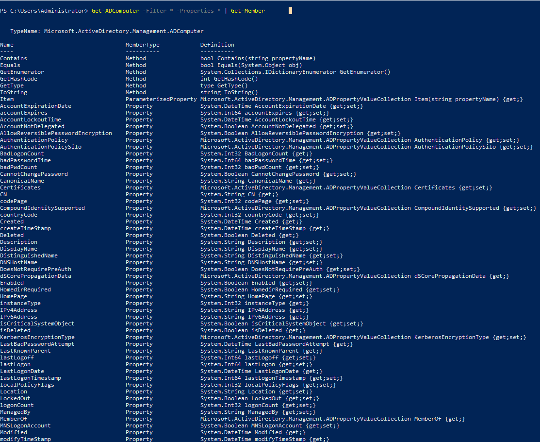 Get-ADComputer -Filter * -Properties * | Get-Member