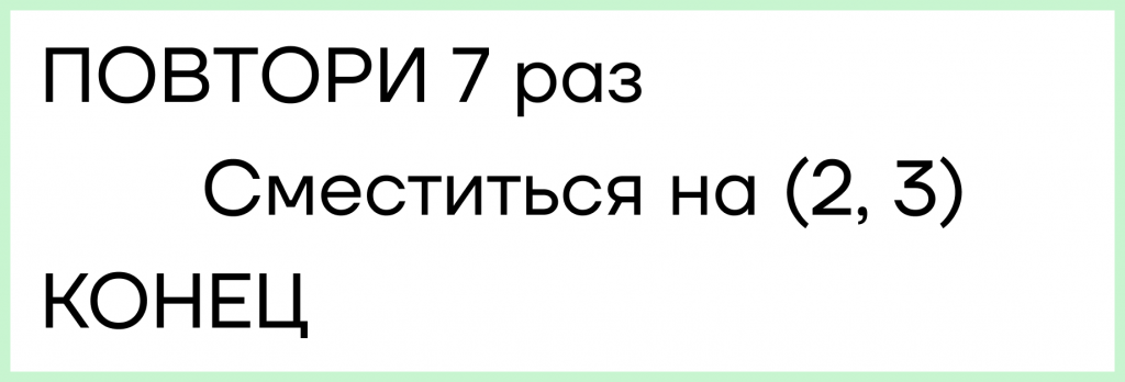 7 раз подвинет Чертёжника по оси х на 2 и по оси у на 3.