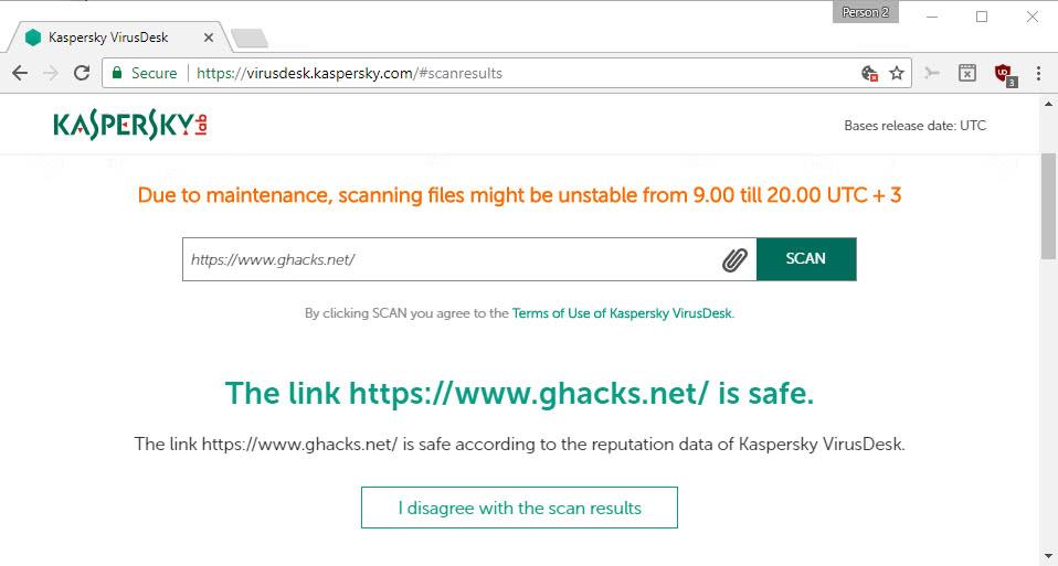 Данный сервис предназначен для проверки ссылок на безопасность. В специальное текстовое поле вставляете ссылку на подозрительный сайт, и Доктор Веб сканирует вложенные файлы на html-странице, изучая, нет ли вредоносного кода. Как правило, вирусная угроза на онлайн-ресурсах скрывается в javascript-файлах. Если сценарии содержатся в базе вредоносных сайтов или сайт перенаправляет на другой ресурс, Доктор Веб Онлайн уведомит вас об этом.