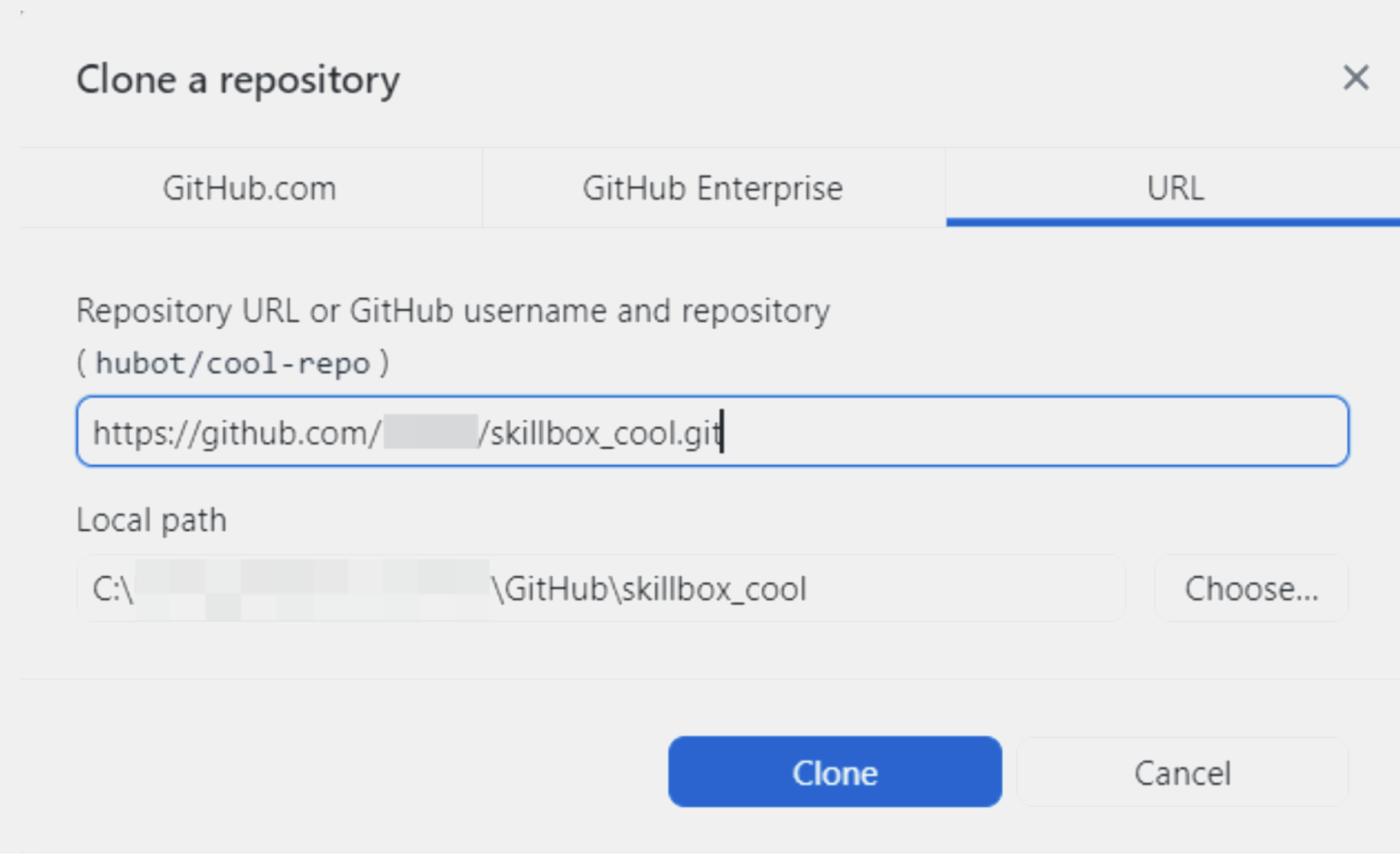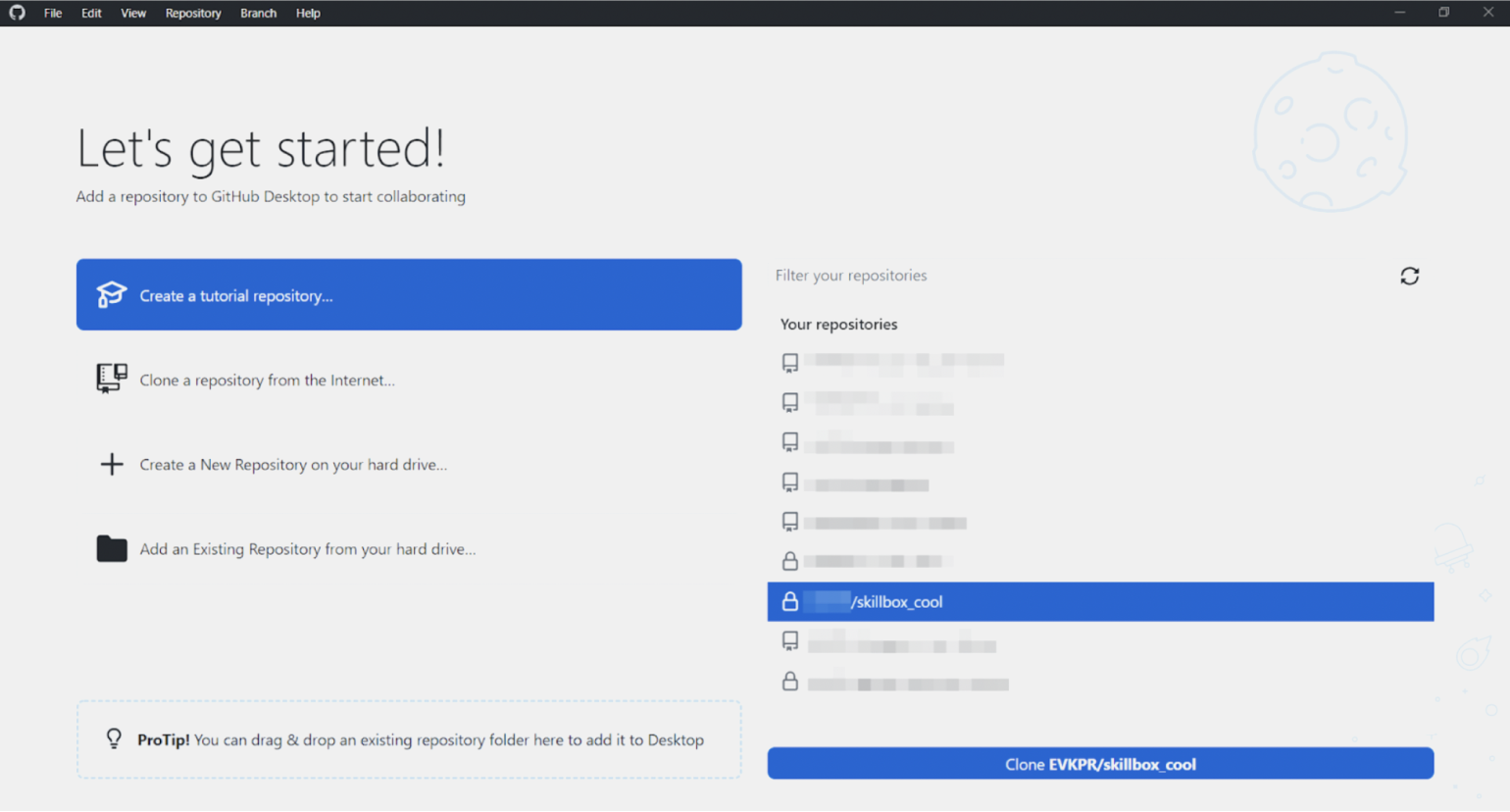Клонирование репозитория в десктопном клиенте GitHubСкриншот: Skillbox Media