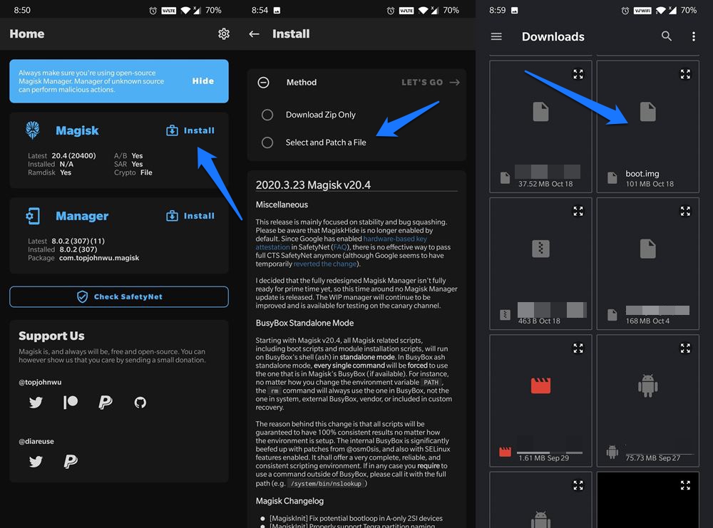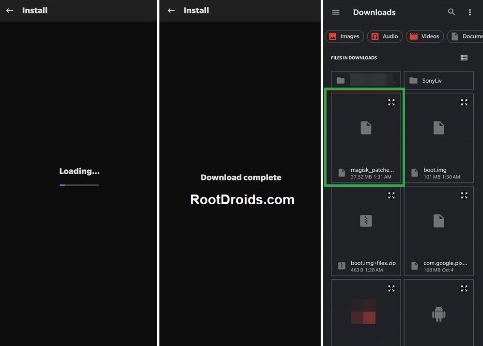 - Then the patched patched boot image file will be saved as magisk_patched.img in Internal Storage > Downloads.