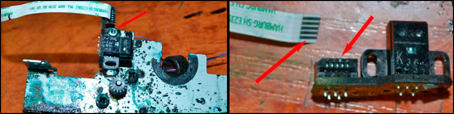 После того как разобрали принтер Canon и вымыли его основу, следует взять часть с мотором и оптопарой (отложенную в пункте №10), очистить от грязи или отработанного чернила. Контакты нужно аккуратно протереть салфеткой, смоченной спиртосодержащим веществом. Из-за сложной конструкции датчик нужно отмачивать в ультразвуковой ванне или в емкости со спиртом. Двигатель следует просто протереть влажной тканью или салфеткой. Кроме того, при наличии ошибки 6000 нужно проверить работу датчика, шлейфа и мотора. В случае неисправности – заменить.