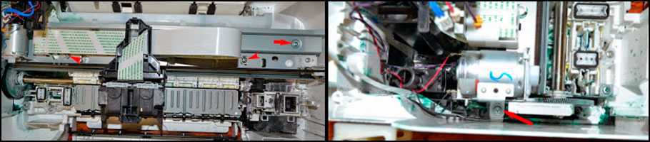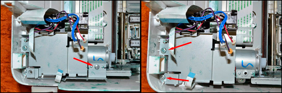 7. Переходим к основанию, на котором держится каретка и двигатель, выкручиваем несколько винтов и освобождаем принтер от этой части.