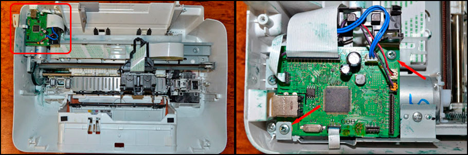 Разобрав принтер таким образом Вы можете найти и устранить какие-либо дефекты, связанные с позиционированием каретки или материнской платой. Однако чтобы отремонтировать механизм протяжки бумаги, придется продолжить разборку аппарата. Дальше делаем следующее: