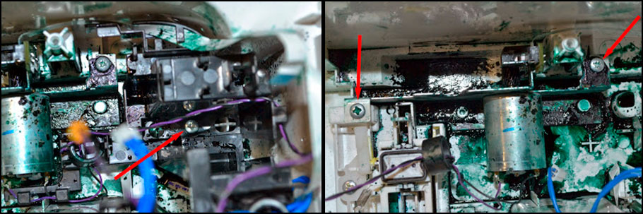 11. Вымываем всю грязь, которая скопилась на корпусе под вышеуказанной деталью. Для этого рекомендуется использовать хорошие чистящие средства для промывки принтера.