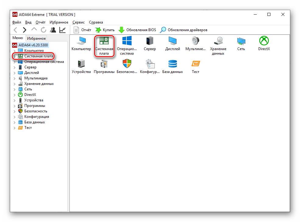 - Щёлкните по значку «Системная плата» или нажмите на эту вкладку слева.