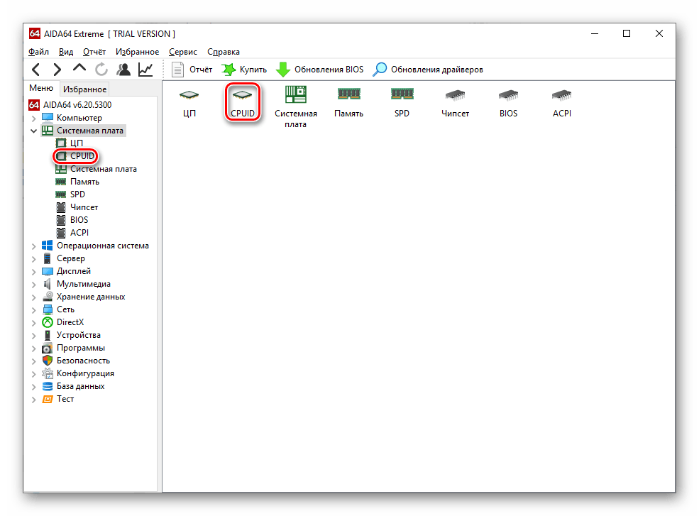Перейдите в подраздел «CPUID» через панель или ярлык.