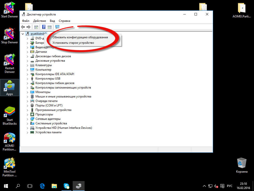 - После завершения процедуры деинсталляции старого драйвера перезагружаем устройство.