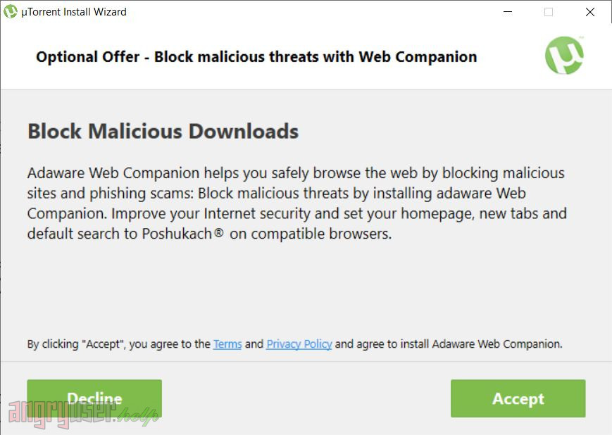 Следующее окно также пытается навязать нам ненужное программное обеспечение. На этот раз вроде какой-то «блокировщик вредных сайтов». Также отказываемся от него нажатием на кнопку «Decline».
