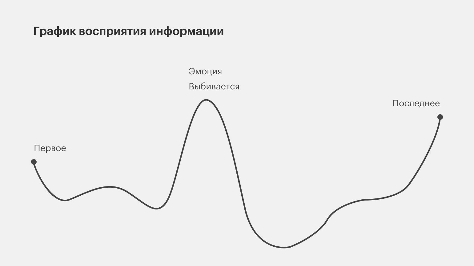 Лучше всего люди запоминают начало, конец и то, что выбивается из общей логики или вызывает сильные эмоции