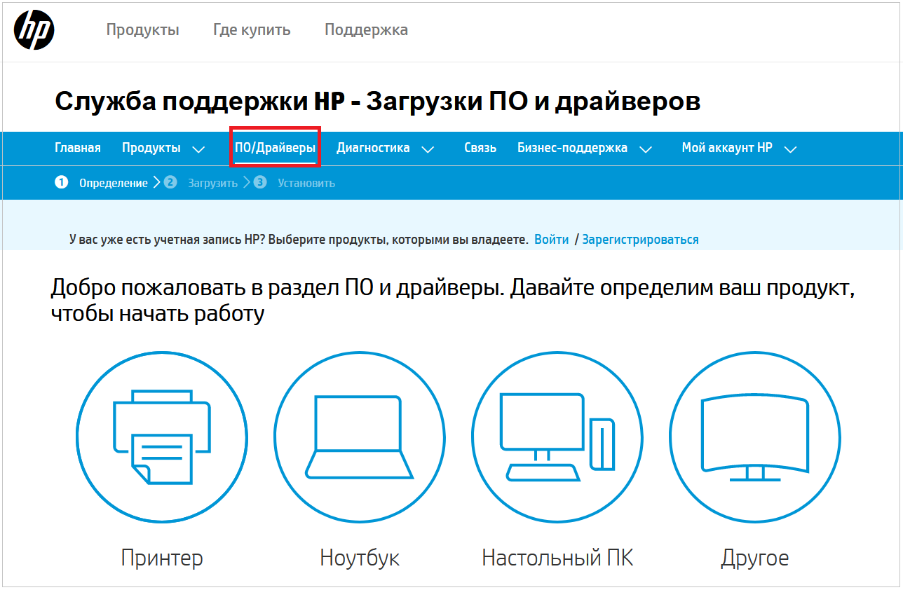 Теперь драйвера и программы можно скачать с официальных сайтов. Например, на официальном сайте HP есть раздел «Поддержка», в котором есть раздел «Программы и драйверы».
