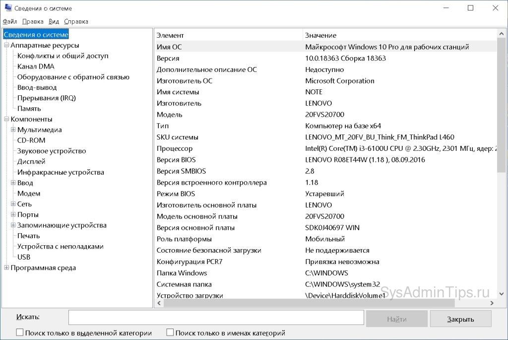 Если краткий перечень системных параметров не удовлетворяет – можно получить более полную картину по поводу установленных компонентов. Наверное, этот способ будет наиболее информативным и подробным, по сравнению со всеми вышеописанными. Снова выполняем комбинацию «Win+R», снова окно «Выполнить». На этот раз вводим «msinfo32» и отправляемся на поиски всех доступных сведений, которые только может предоставить операционная система своими стандартными средствами.