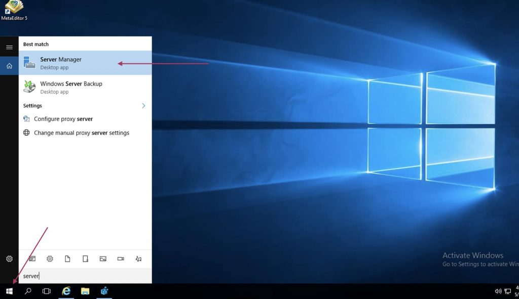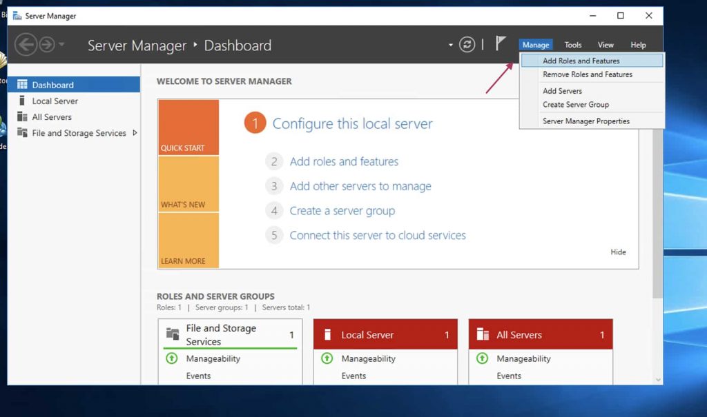 Нажмите Пуск, запустите программу Диспетчер серверов или Server Manager