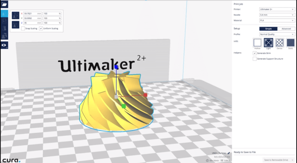Ultimaker Cura is a slicing program that translates 3D models into printing instructions for your 3D printer. It offers an easy-to-use interface and a wide range of features, making it a great choice for both beginners and advanced users. It is also very well supported, with regular updates and a large online community.