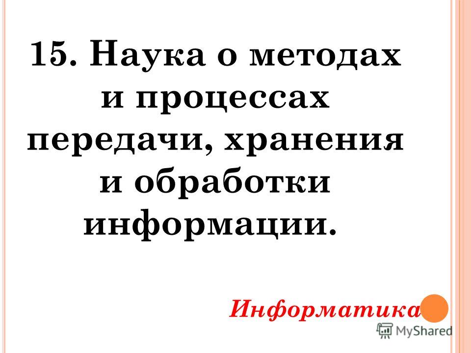 15. Наука о методах и процессах передачи, хранения и обработки информации. Информатика