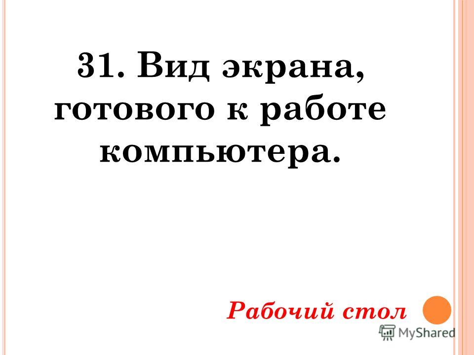 Рабочий стол 31. Вид экрана, готового к работе компьютера.