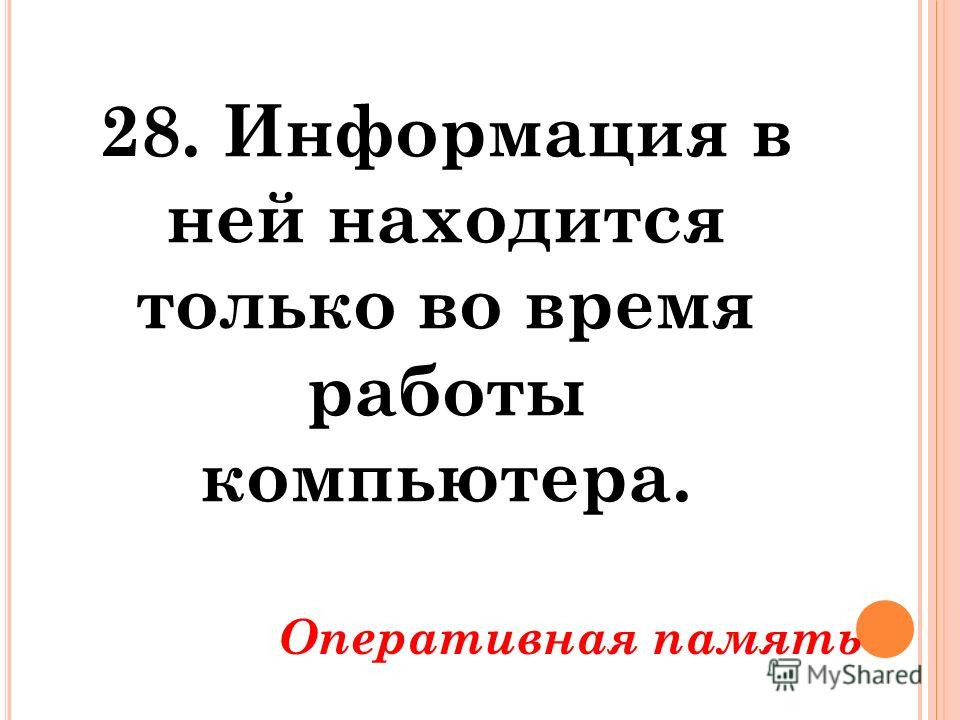 Оперативная память 28. Информация в ней находится только во время работы компьютера.