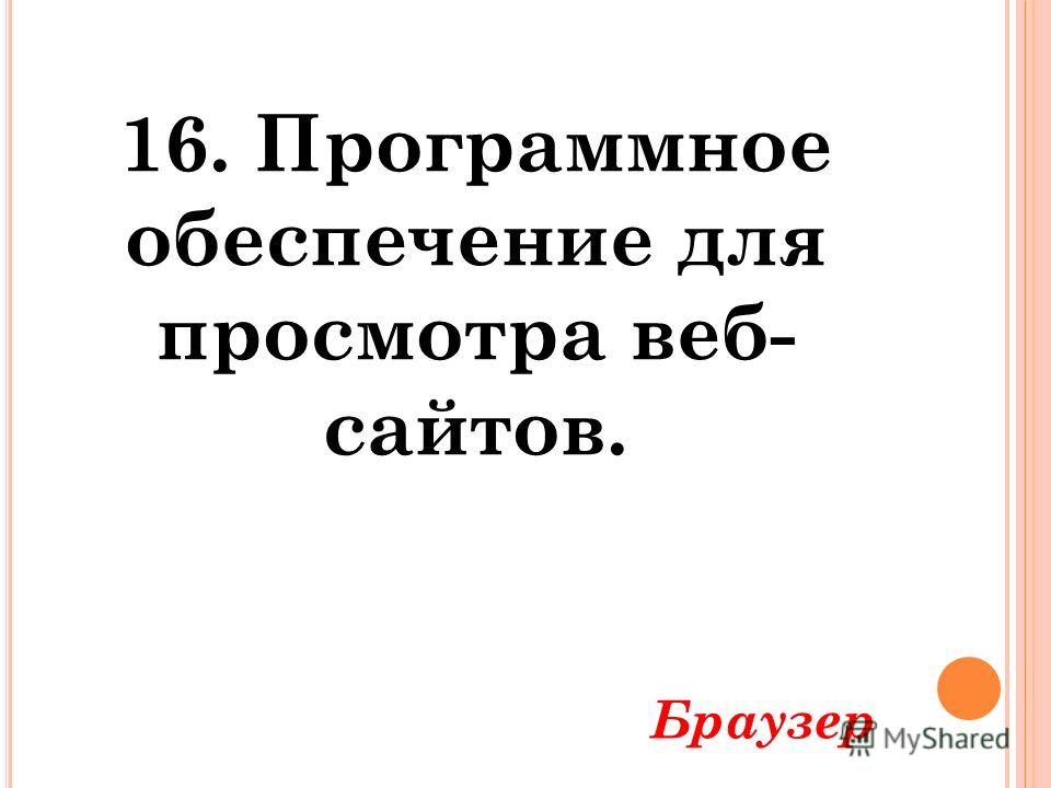 Браузер 16. Программное обеспечение для просмотра веб- сайтов.