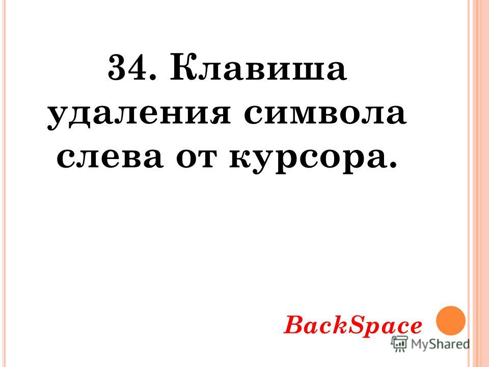 34. Клавиша удаления символа слева от курсора. BackSpace