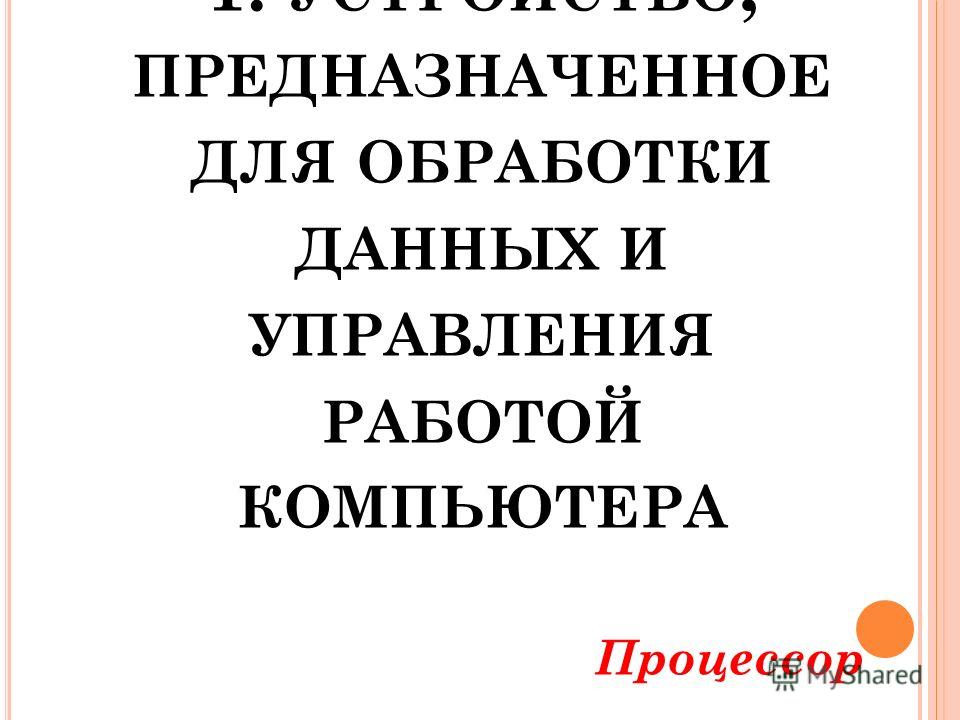 1. УСТРОЙСТВО, ПРЕДНАЗНАЧЕННОЕ ДЛЯ ОБРАБОТКИ ДАННЫХ И УПРАВЛЕНИЯ РАБОТОЙ КОМПЬЮТЕРА Процессор