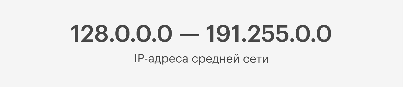 Если первые два бита — это 10 (то есть 2 в десятичной системе счисления), значит, IP-адрес принадлежит к средней сети и использует два числа как указатель на неё.