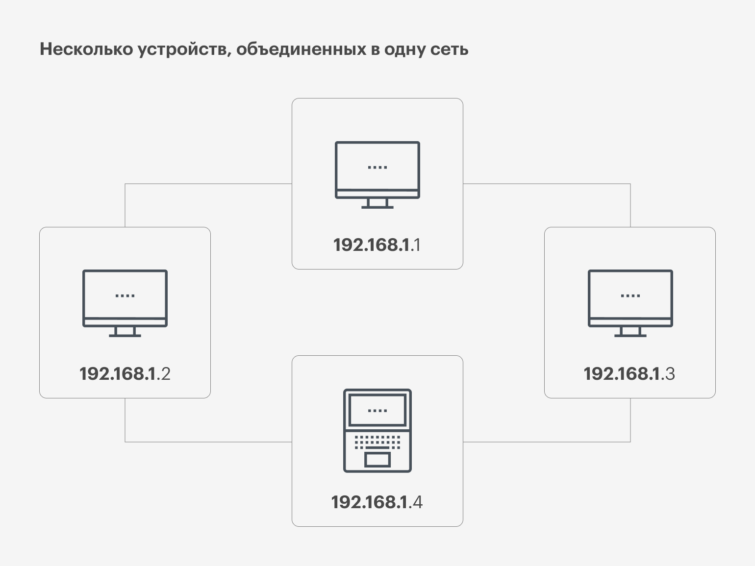 В нём первые три числа означают номер сети, а четвёртое — номер хоста (то есть вашего устройства). Все устройства, идентификаторы которых начинаются с 192.168.1, находятся в одной сети.