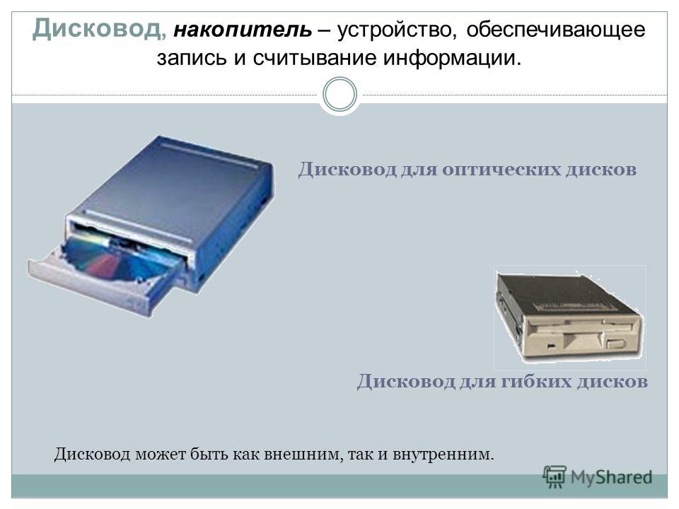 Накопитель (дисковод) – устройство, которое обеспечивает запись/считывание информации
