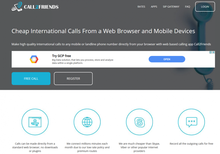 Данный сервис, как и предыдущий, можно использовать с помощью любого современного интернет-обозревателя. Сами же услуги по совершению бесплатных звонков предоставляются со значительными ограничениями, но при этом не требуется регистрация.