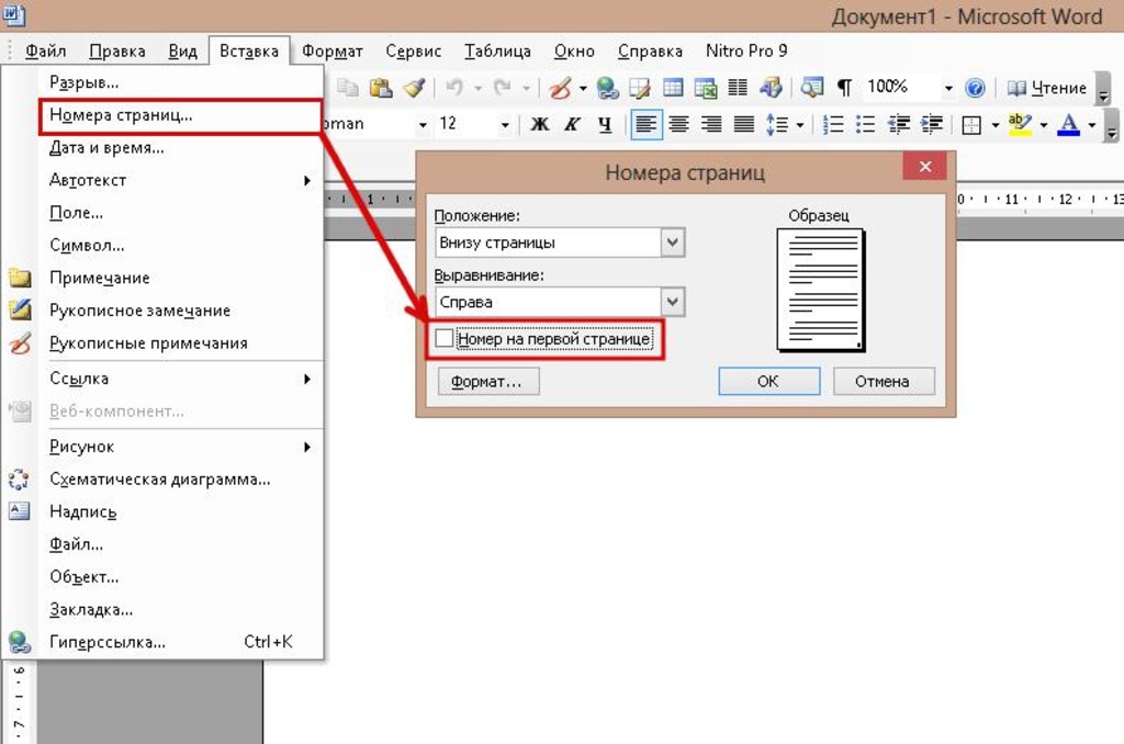 А в версии 2007 года это делается немного сложнее. Чтобы убрать номер с первого листа, вам придется: