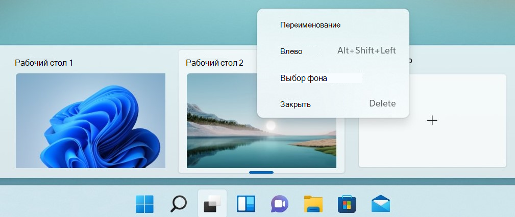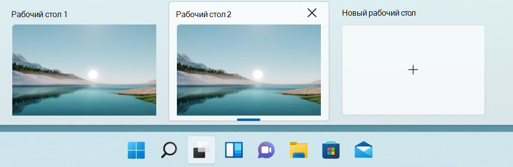 - На панели задач выберите значок Представления задач и выберите Новый рабочий стол.