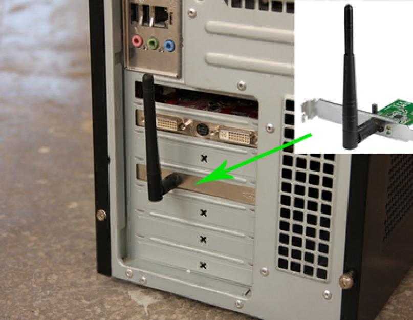 Снаружи системного блока, будет выглядывать антенна адаптера, или даже несколько. Это все для лучшего приема. Ведь если обычный USB приемник можно подключить через удлинитель, что бы он лучше принимал сигнал, то с внутренним адаптером так не получится.