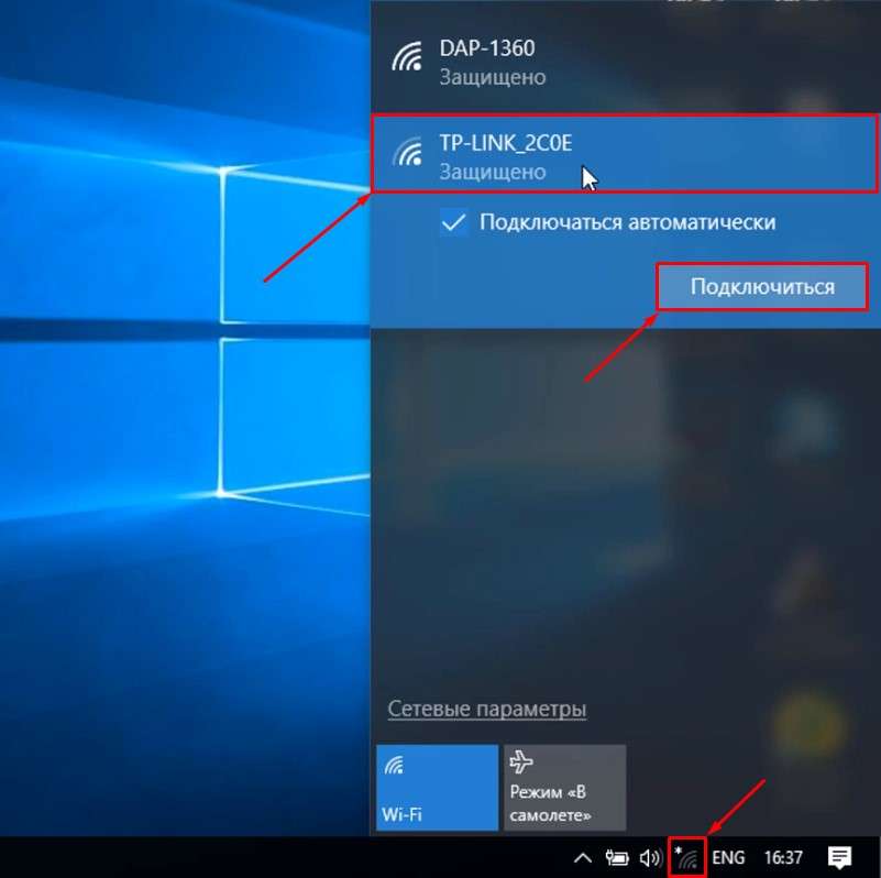 Для подключения компьютера к Wi-Fi нужно нажать на эту иконку и выбрать одну из доступных сетей. Внизу показано как это происходит в Windows 7 и Windows 10.