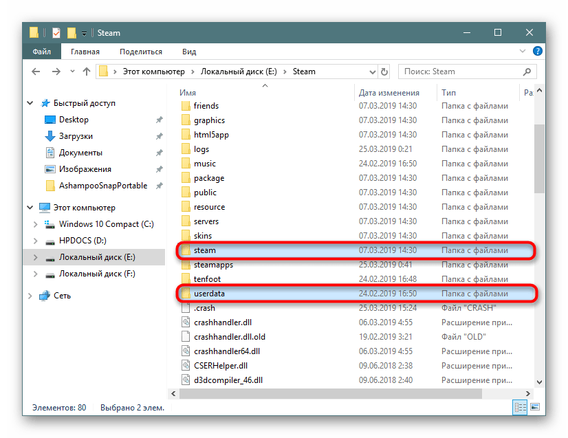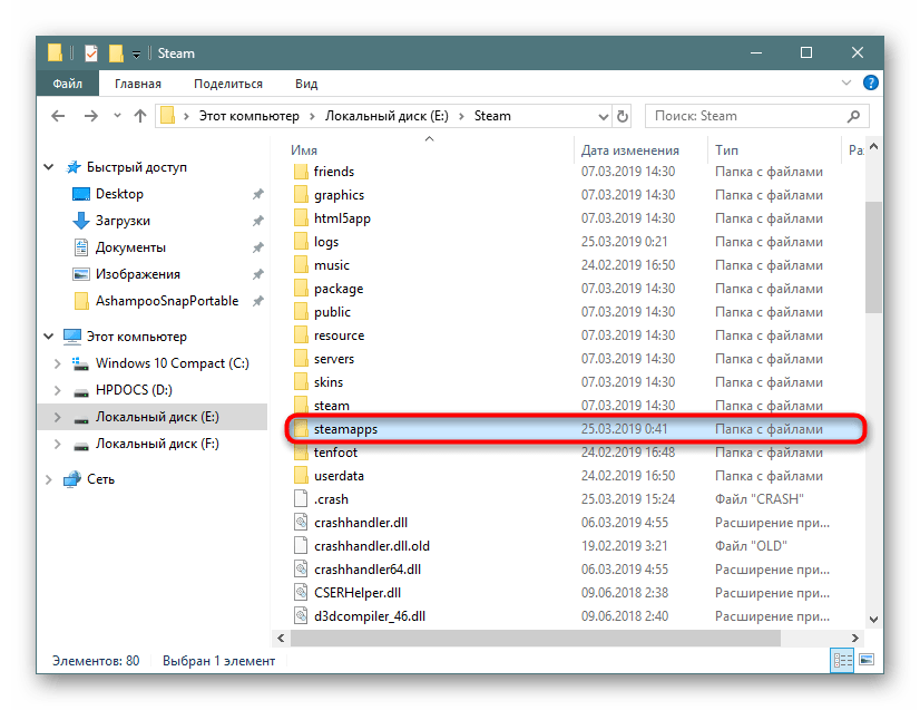 «steamapps» может иметь разный вес — все зависит от количества установленных вами игр. Перенесите эту папку в другое место на жестком диске или на внешний носитель. Если вы копируете папку на внешний накопитель, но на нем не хватает места, попробуйте удалить те игры, которые вам не нужны. Это позволит уменьшить вес папки с играми, и она сможет поместиться на устройство.