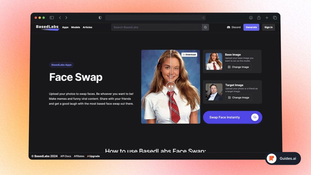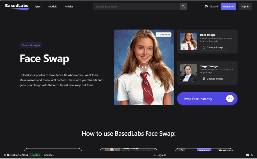 - Creative Versatility: Beyond simple face swapping, BasedLabs offers a range of features that unlock creative possibilities. You can swap faces with celebrities, animals, or even inanimate objects, and further customize the results with various filters and effects.