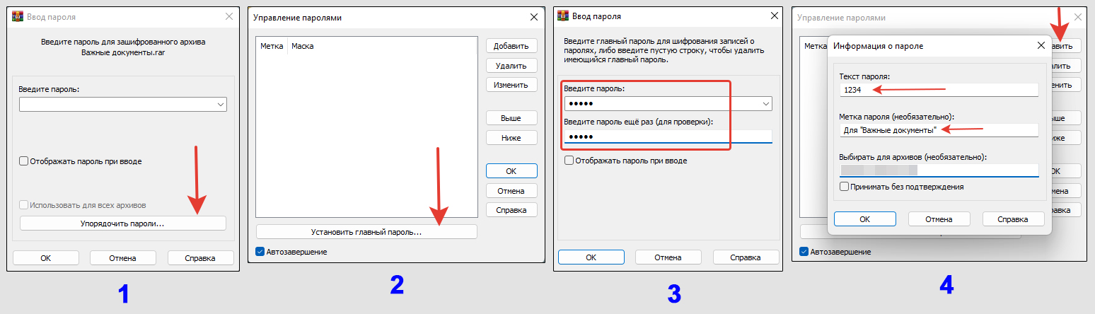 Предупреждение: не забывайте пароли. В обычные архиваторы не встроена функция восстановления!