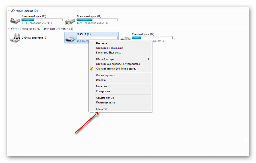 - Выберите нужный диск и выберите из контекстного меню функцию «Форматировать».