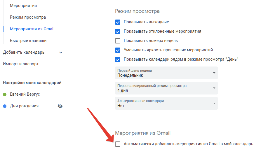 Важно! Отключение автоматического добавления мероприятий из Gmail отключит не только назойливый спам, но и автоматически добавляемую полезную информацию, например, о забронированных гостиницах или авиарейсах. В целом и с галочкой можно избавиться от спама, пробуйте!. Вот такая простая инструкция, которая поможет Вам избавиться от Спама в Google Календаре