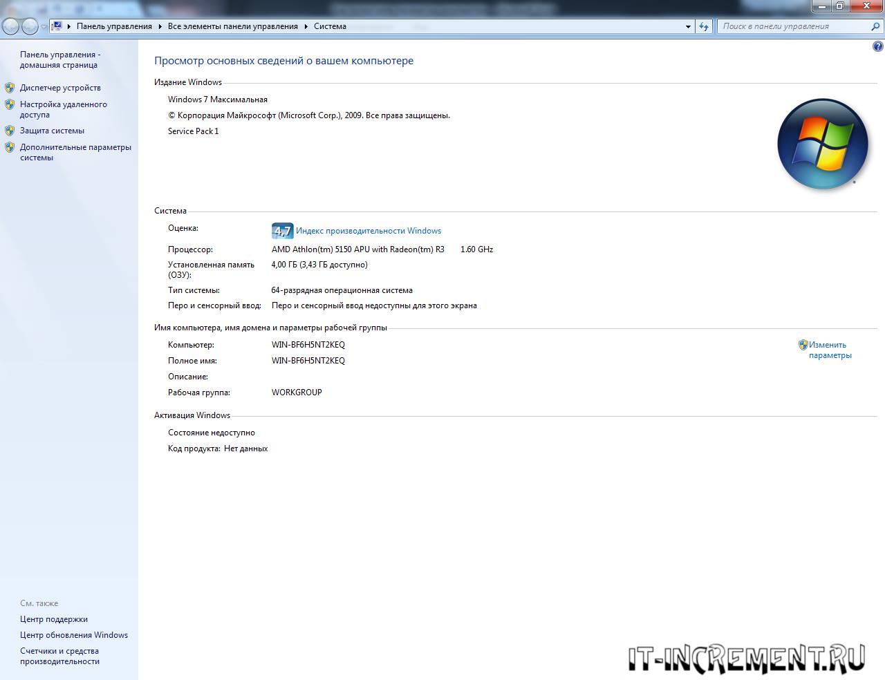 - Нажать Windows + Break. Появится окно со свойствами системы. В нижней его части находится строка активации.