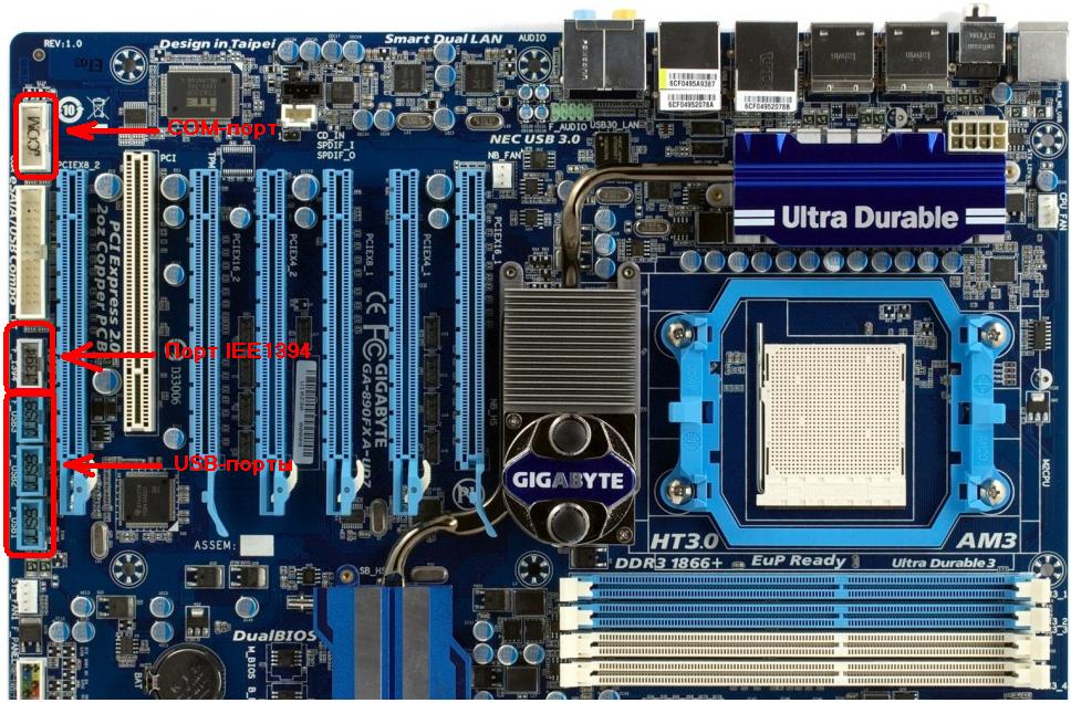 Все вышесказанное относится и к другим портам, установленным на материнской плате. Например, COM или FireWire Последовательный порт IEEE1394 может просто не быть отправлен на заднюю панель персонального компьютера, но в то же время присутствует на материнской плате. В этом случае достаточно купить подходящий поезд и вывезти его.