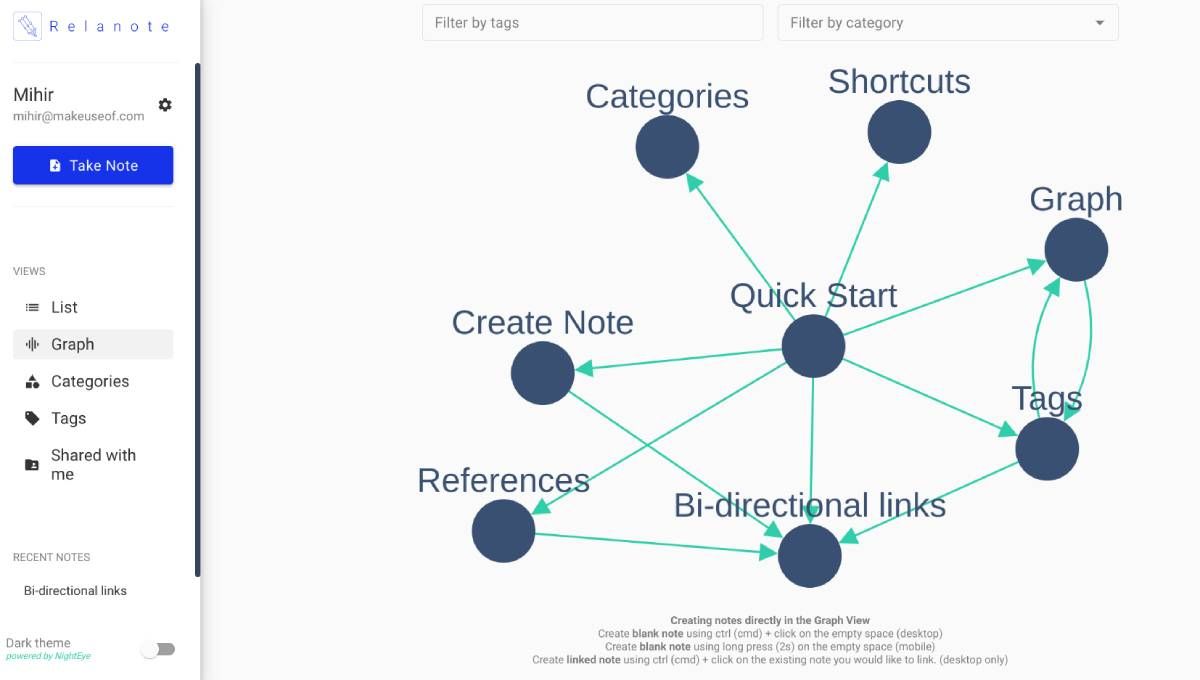 Вы видели, как работает Википедия. Когда вы читаете одну статью, вы найдете ссылки на другие статьи, чтобы при необходимости раскрыть тему. Это называется двунаправленным связыванием , то есть обе статьи ссылаются друг на друга. С Relanote вы можете создавать свои собственные Wiki заметок, используя двунаправленные ссылки.