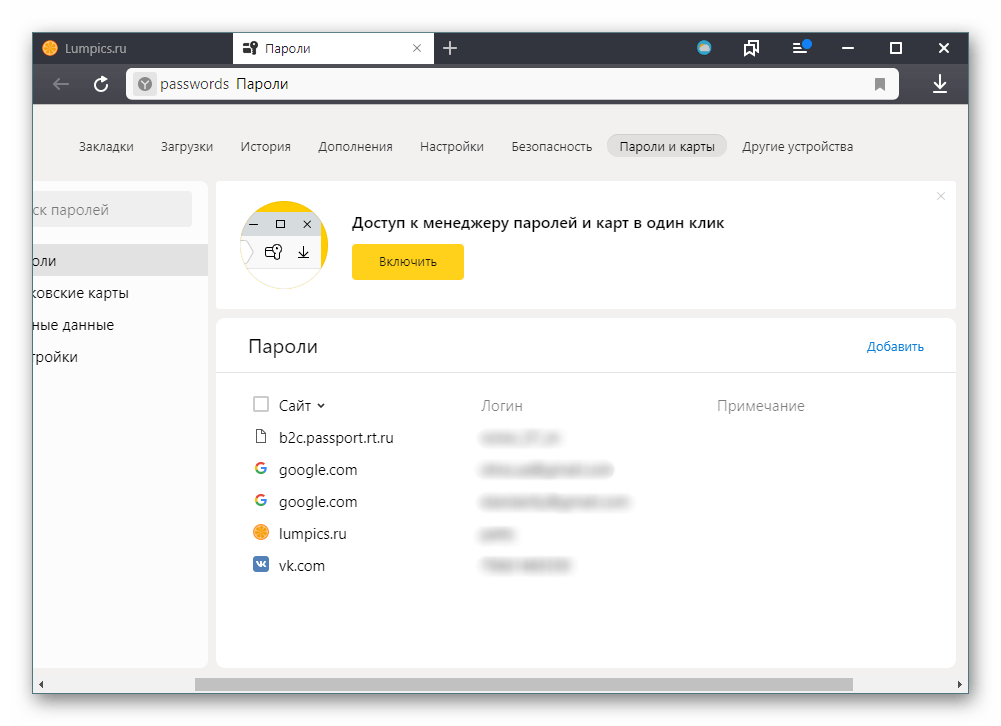 Теперь вы знаете, где хранятся пароли в Яндекс.Браузере, и как их посмотреть. Как видите, сделать это очень легко. Во многих случаях это спасает ситуацию с забытыми паролями и освобождает от необходимости их восстановления. Но если вы пользуетесь компьютером не один, то рекомендуем поставить защиту на учетную запись Windows или активировать «Мастер-пароль» в настройках Yandex, чтобы все ваши личные данные не смог просмотреть никто кроме вас.