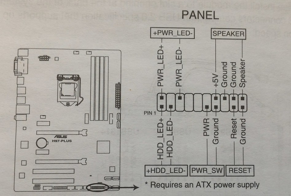 Разъем для HDD LED имеет две контактные площадки — плюс(+) и минус(-). Обычно контактная площадка для плюса (+) обозначена знаком плюса (+), а контактная площадка для минуса (-) обозначена знаком минуса (-). Также можно найти положительный контакт по его круглой форме, в то время как отрицательный контакт имеет более прямоугольную форму.