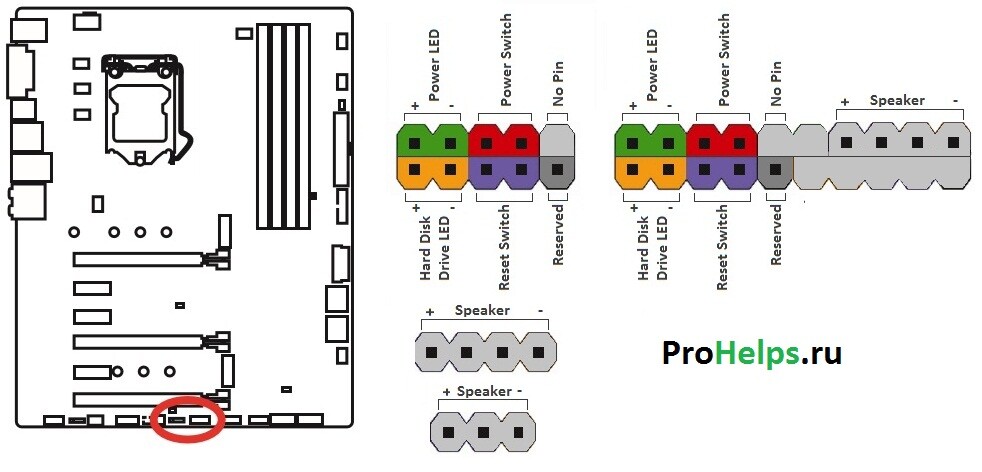 Названия этих штекеров могут различаться, но не сильно. Например, вместо POWERSW может быть указано PW. А вместо RESTARTSW – просто RES. Сравнивая первые буквы названия штекеров и разъёмов, можно без труда понять, какой штекер куда должен подключаться. Также помогают цвета, которые, зачастую, соответствуют цвету кабелей от штекеров. Но в первую очередь нужно сравнивать именно названия, следом – цвета, ведь они могут различаться, в отличие от названий.