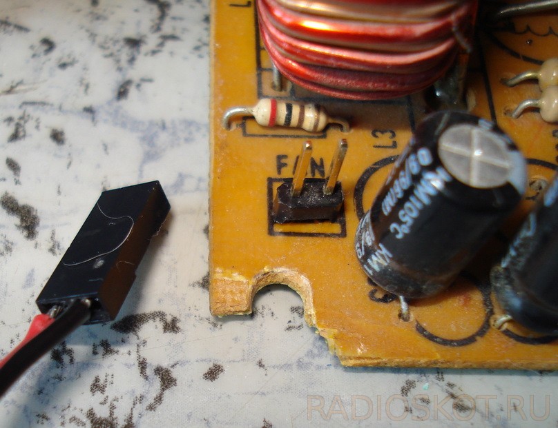 Взялся за плату. Провода, идущие на вентилятор, ранее были просто запаяны – установил разъём на случай необходимости разборки блока питания в дальнейшем.
