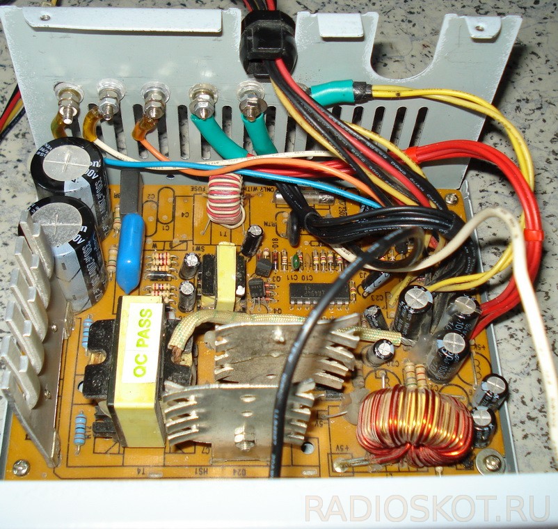 Остальные проводники ATX-разъема – откусываются возле самой платы (а лучше – отпаиваются). Для произведения пайки, плату блока питания придется достать (то есть, выкрутить).