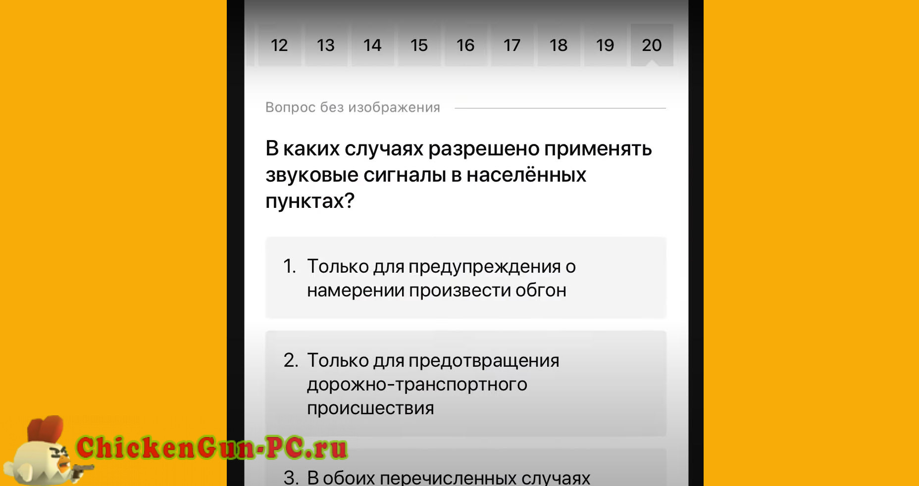 Экзамен ПДД на нашем сайте точно такой же, как и в любом экзаменационном подразделении ГАИ. Нужно ответить на 20 вопросов за 20 минут. Допускается всего 2 ошибки. За каждую добавляется 5 дополнительных вопросов из той же темы и на них ошибаться нельзя. Регламент проведения теоретического экзамена на сайте соответствует официальному (см. далее после комментариев).
