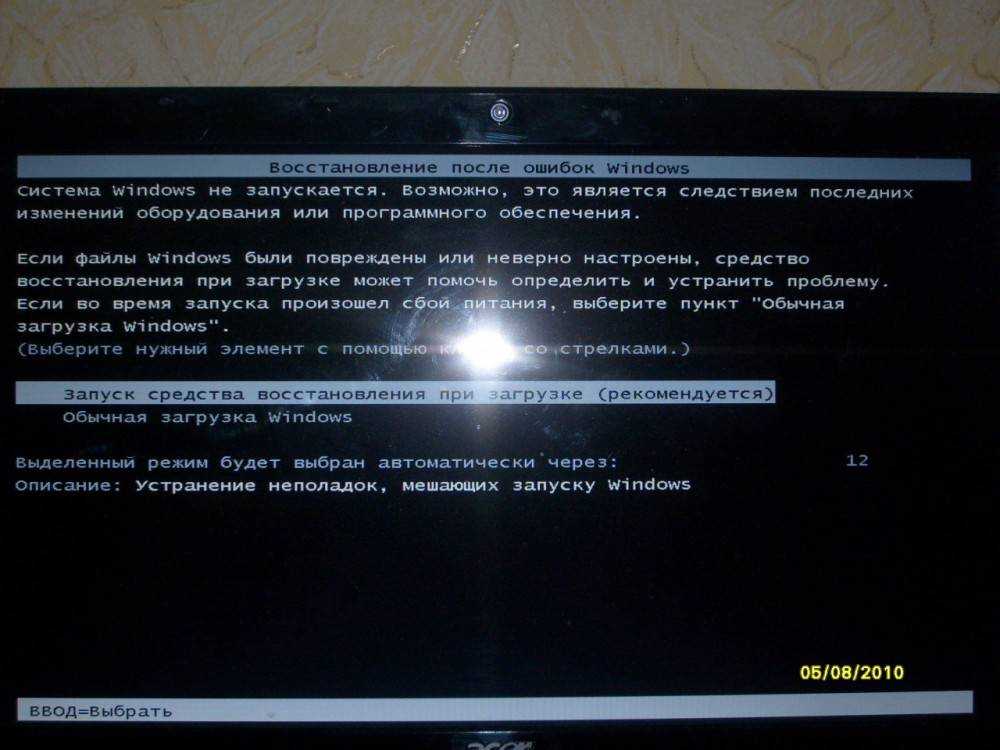 После всех перечисленных способов жесткого обрыва питания, при загрузке Windows сообщит, что ее выключили неправильно, и предложит варианты действий. В списке нужно выбрать «Нормальная загрузка системы» и нажать ввод.