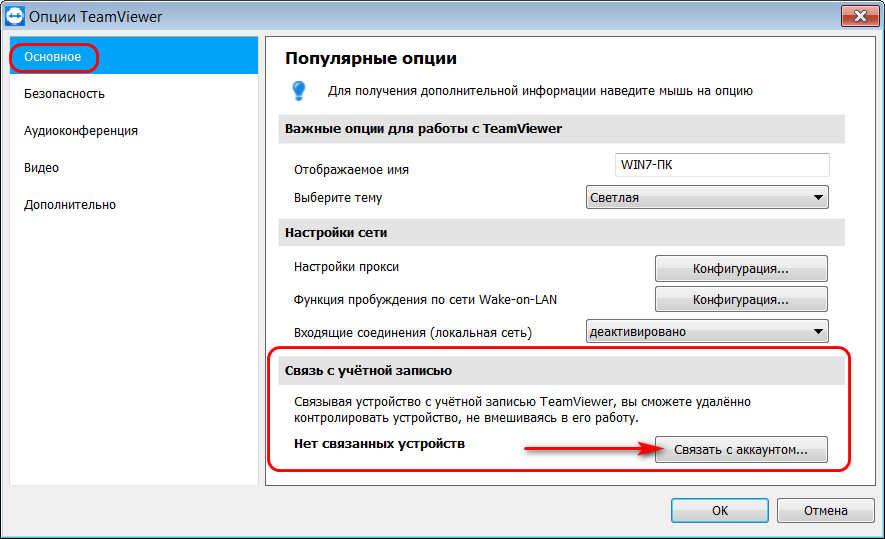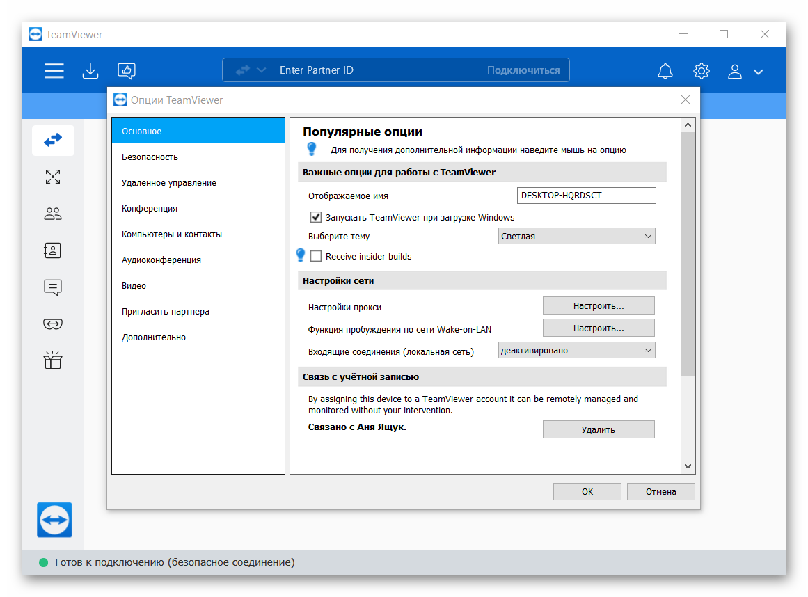 Основные настройки TeamViewer