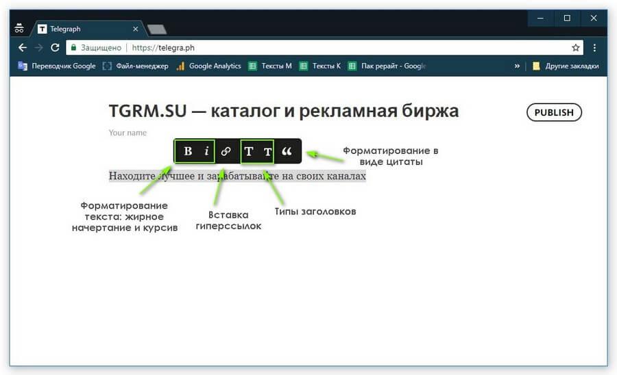 Второй инструмент тесно связан с первым: в статье, опубликованной на Telegraph, можно создавать оглавление. За каждым заголовком закреплен определенный идентификатор, который используется как гиперссылка.