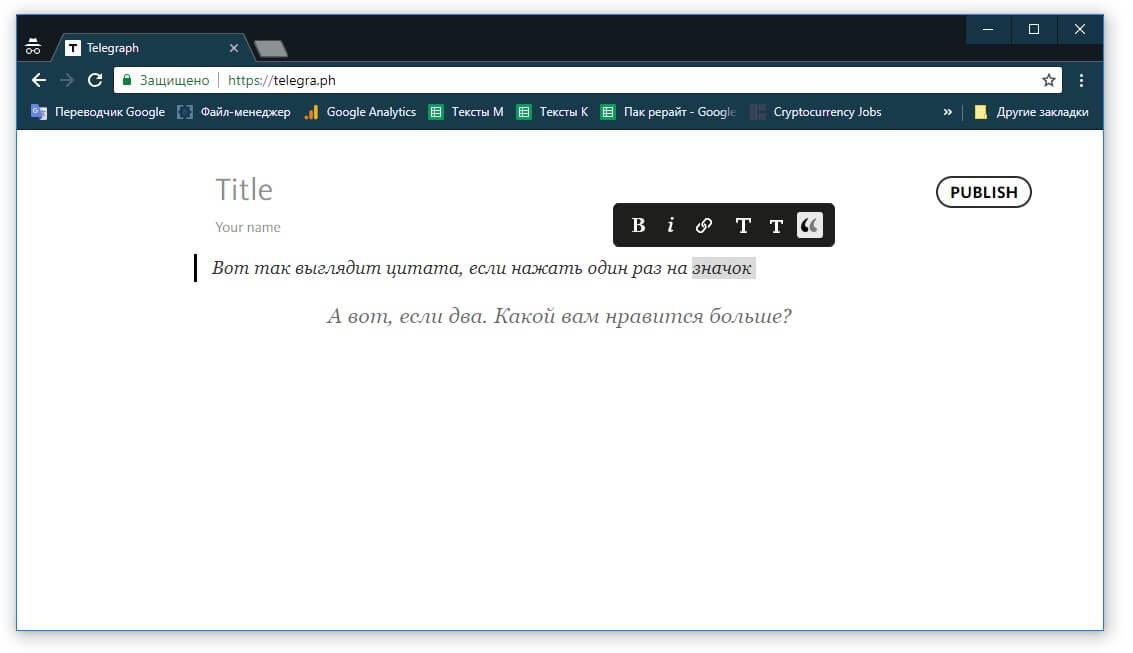 А еще Телеграф дает возможность использовать и оформлять цитаты. Причем делать это можно двумя разными способами.